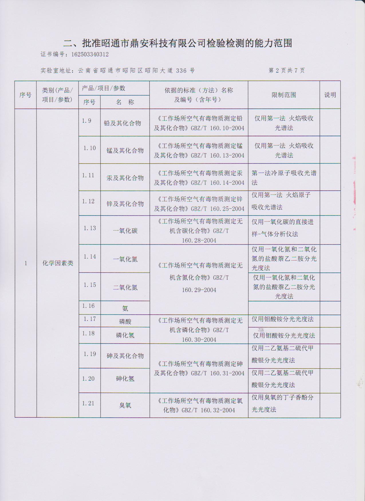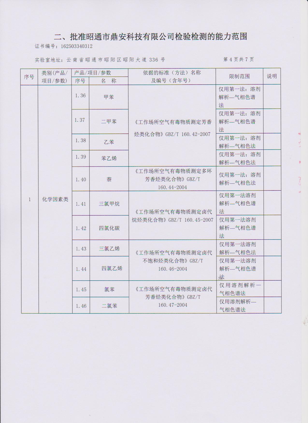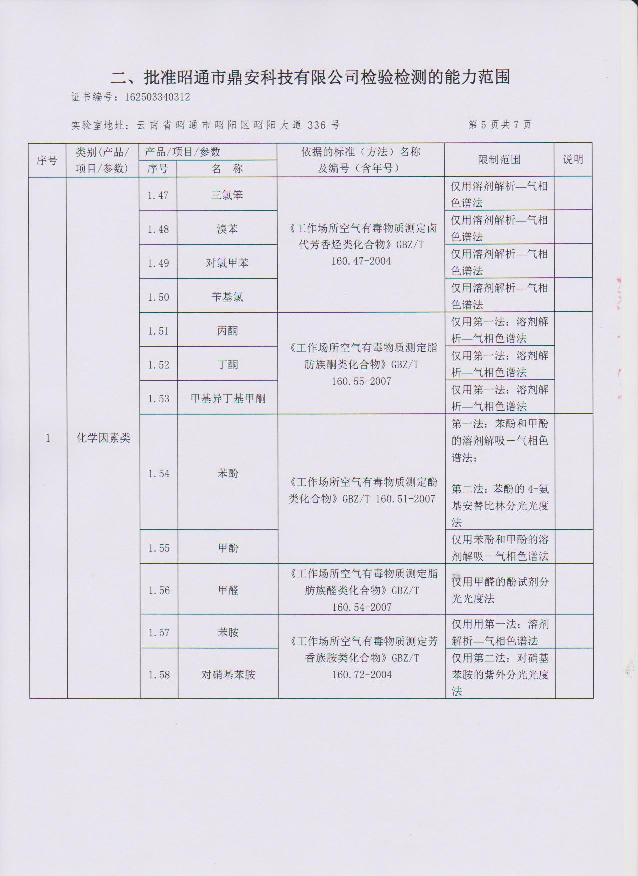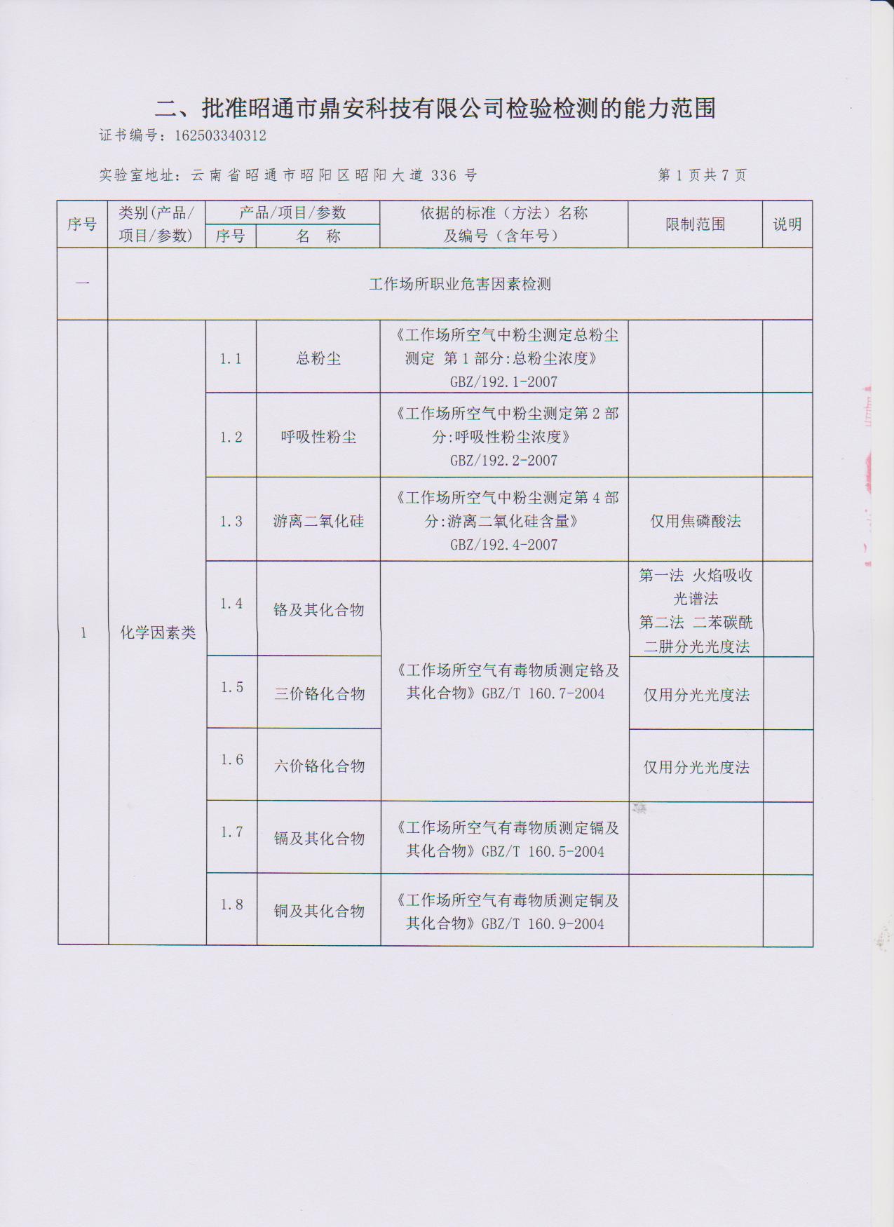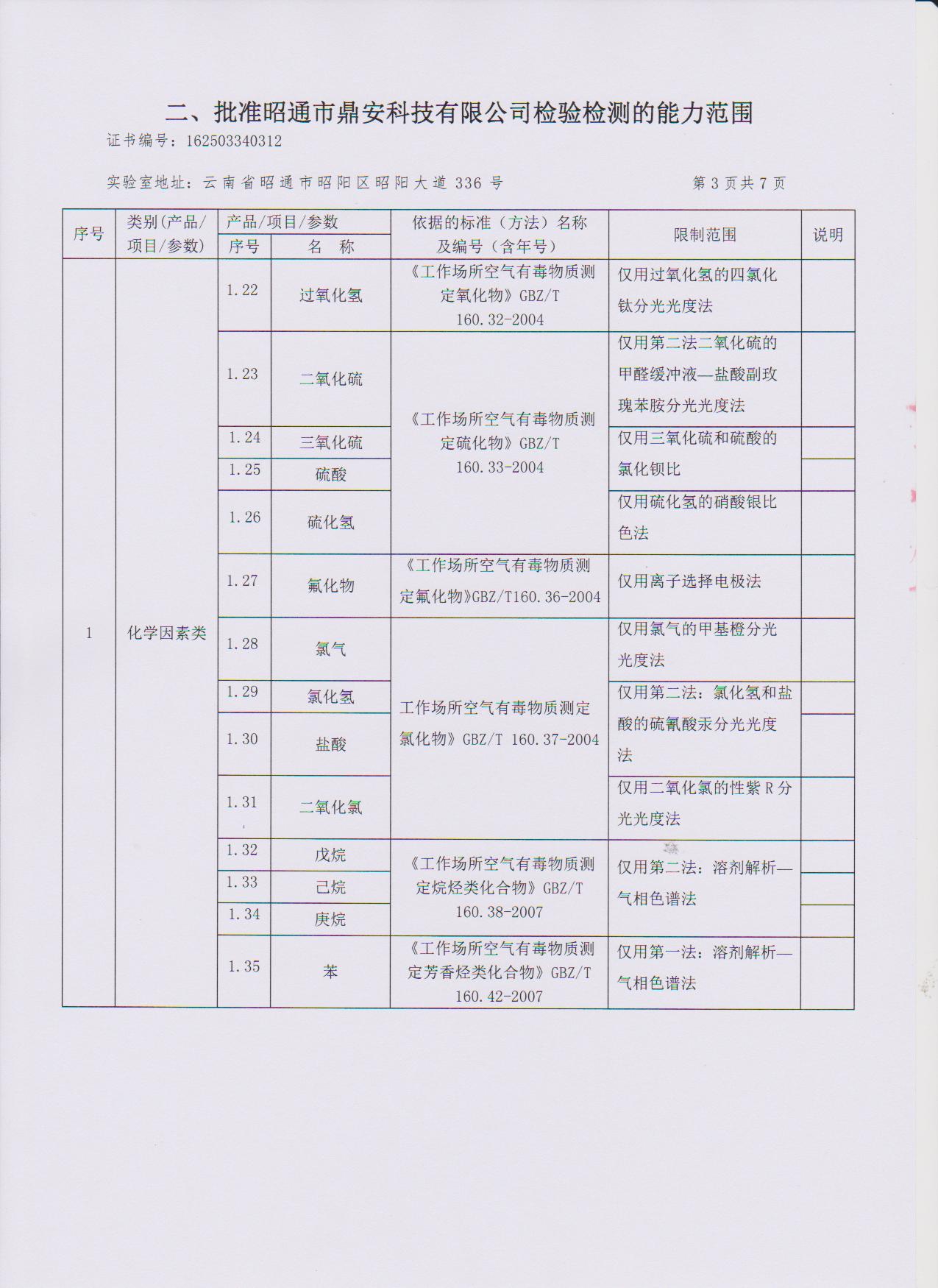 經(jīng)技術(shù)評審審核認(rèn)定的檢測項目(第一類業(yè)務(wù) 合計110項)