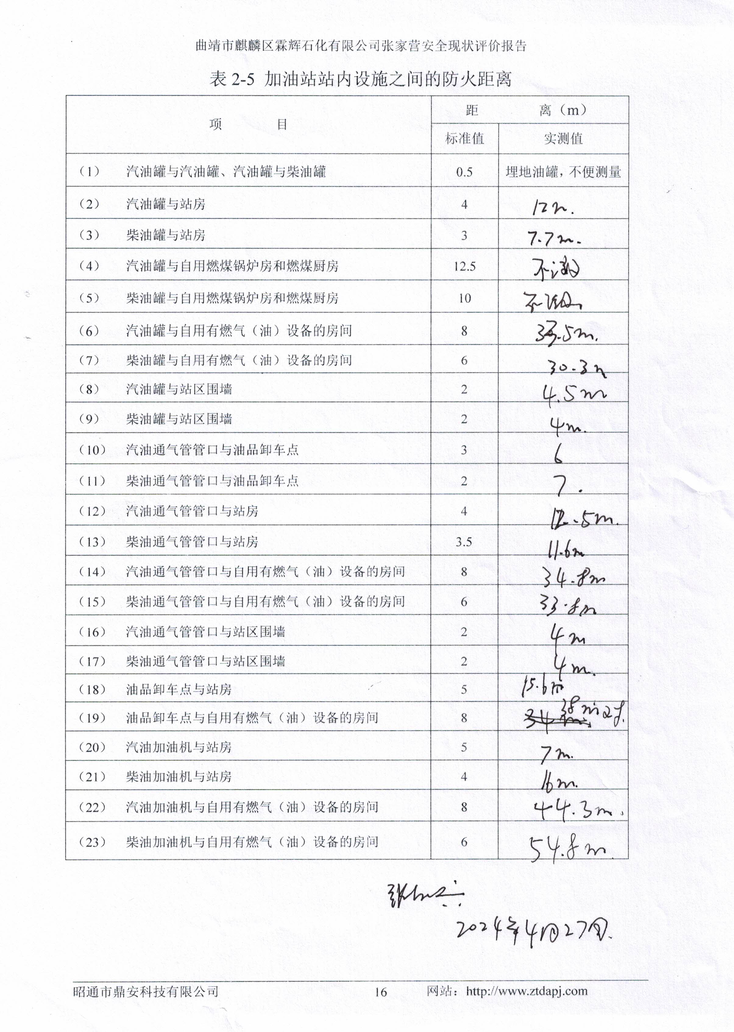 項目名稱 | 曲靖市麒麟區(qū)霖輝石化有限公司張家營加油站安全現(xiàn)狀評價報告 | 合同編號 | DAAPQJ2024-18 | |||||
