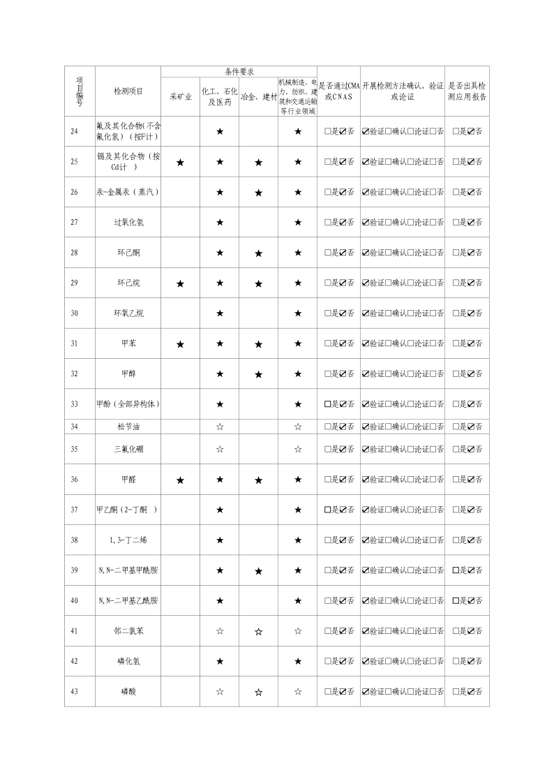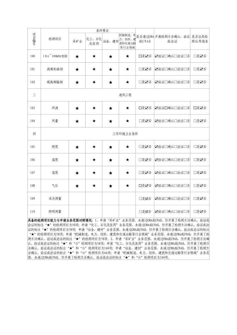 2024年職業(yè)衛(wèi)生技術(shù)服務(wù)機(jī)構(gòu)資質(zhì)證書及職業(yè)病危害因素檢測項(xiàng)目清單
