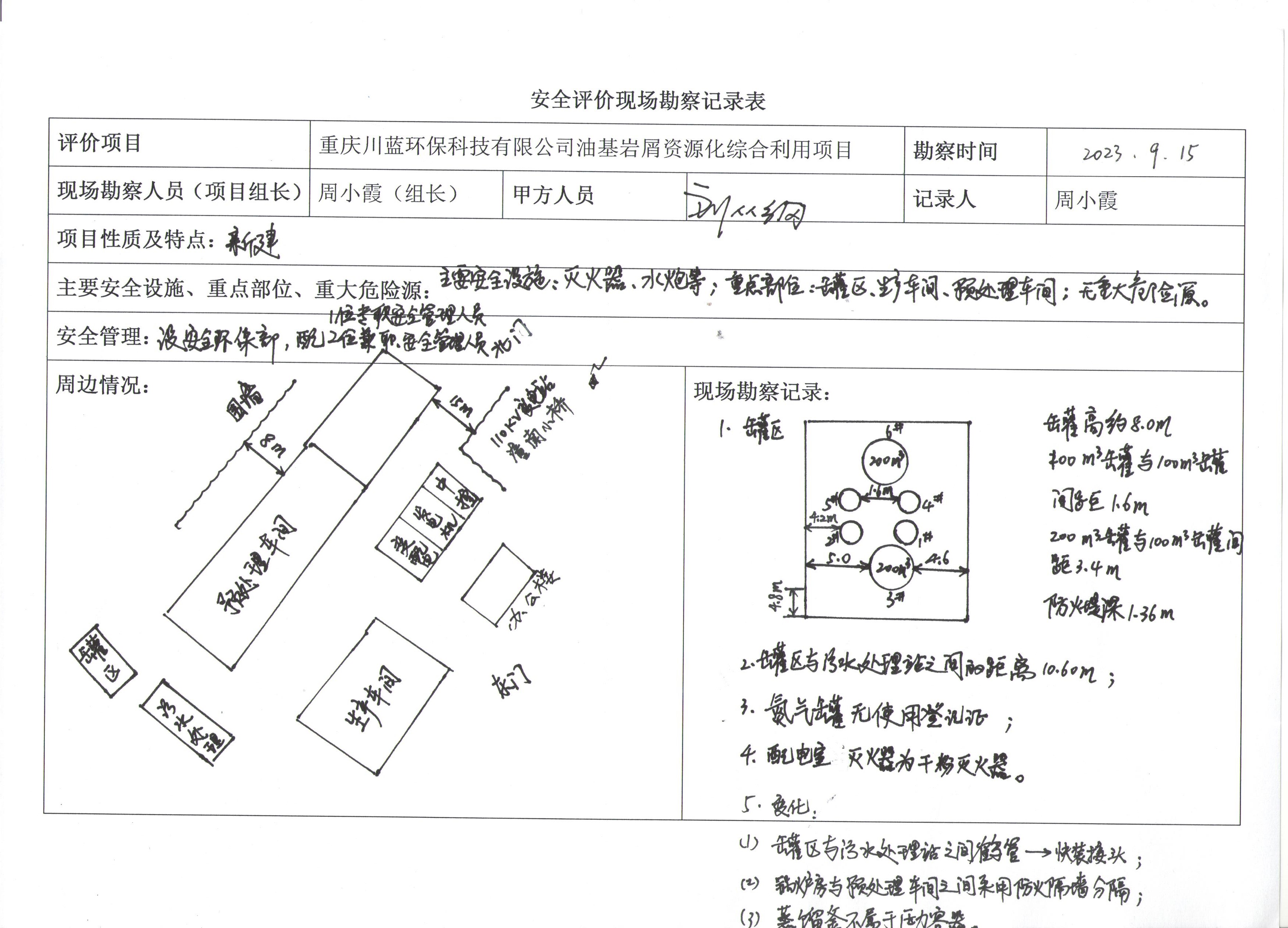 項目名稱 | 重慶川藍(lán)環(huán)保科技有限公司油基巖屑資源化綜合利用項目安全驗收評價 | 合同編號 | DA(渝)-PJ-20230511 | |||||