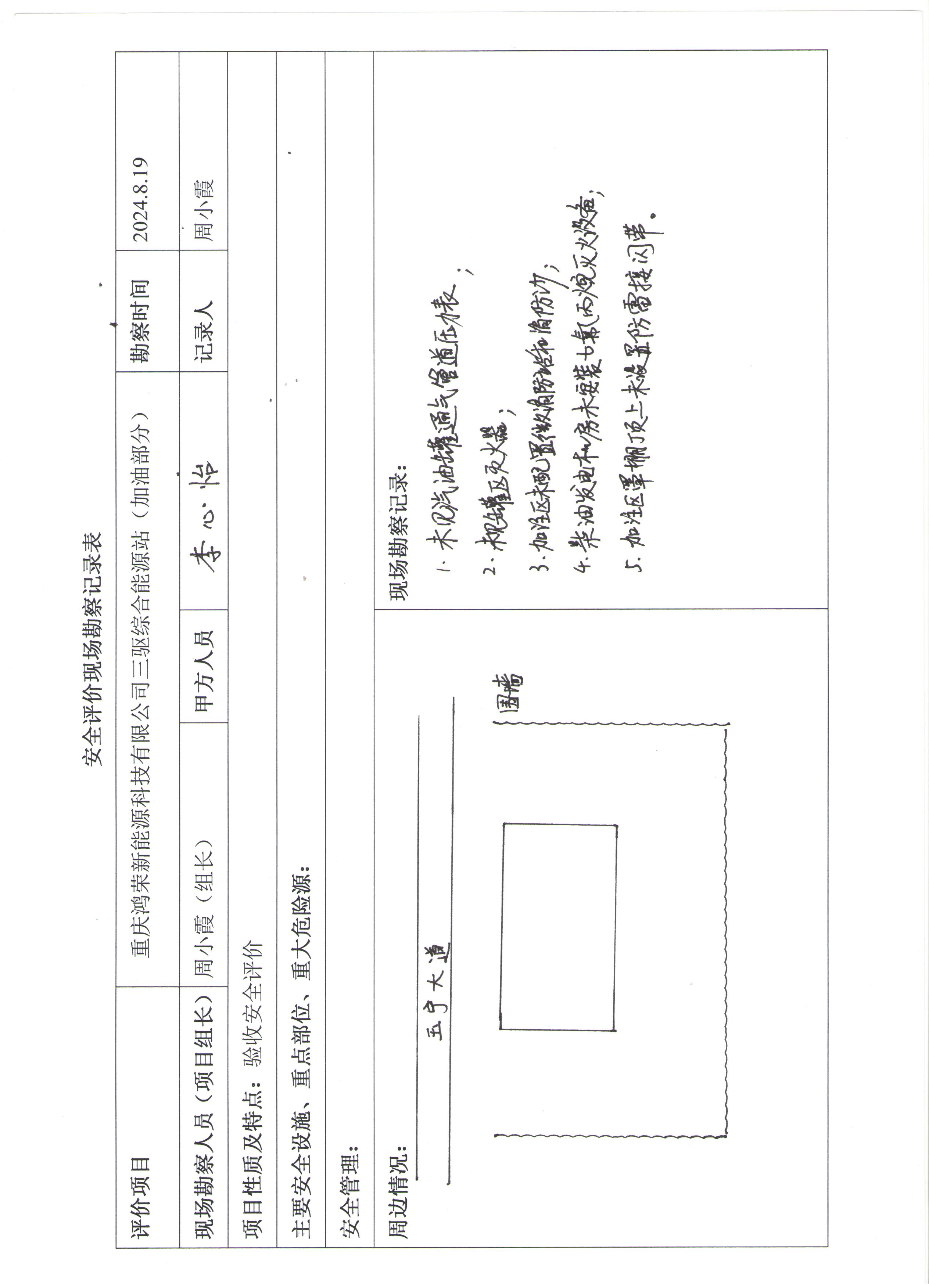 項目名稱 | 重慶鴻榮新能源科技有限公司三驅(qū)綜合新能源站(加油部分)安全驗收評價 | 合同編號 | DA(渝)PJ-034 | |||||