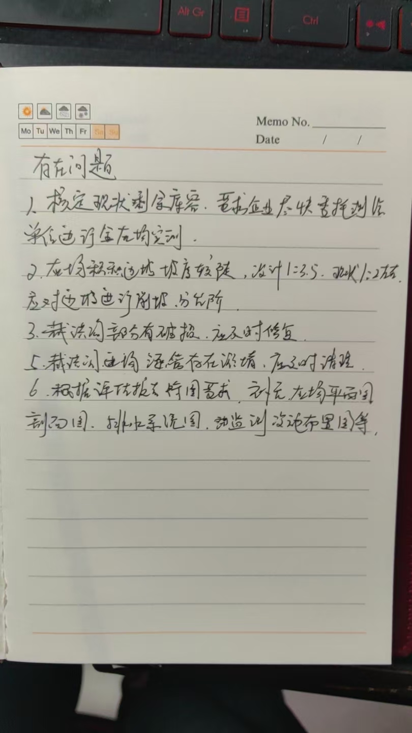 1、因擴容擴建工程尚未完成,目前貯灰場部分區(qū)域超過一期設(shè)計貯灰標(biāo)高,根據(jù)西北有色勘測工程有限責(zé)任公司2025年4月出具的《云南紅河能投發(fā)電有限公司灰場現(xiàn)狀穩(wěn)定性評估報告》結(jié)論,貯灰場壩體處于穩(wěn)定狀態(tài),且灰場下游的居民搬遷工作已基本完成,當(dāng)前風(fēng)險處于可控狀態(tài),根據(jù)《國家能源局關(guān)于印發(fā)〈燃煤發(fā)電廠貯灰場安全監(jiān)督管理規(guī)定〉的通知》 國能發(fā)安全規(guī)〔2022〕53號第二十一條的規(guī)定,公司應(yīng)加快擴容擴建工程的推進,在1年內(nèi)按照正常貯灰場標(biāo)準(zhǔn)完成整治工作; 2、貯灰場的警示標(biāo)志多處缺失,建議在貯灰場排洪豎井設(shè)置警示標(biāo)志; 3、南側(cè)截洪溝有局部破損、淤泥堵現(xiàn)象,應(yīng)及時清理和修復(fù); 4、進灰場道路有揚塵現(xiàn)象,建議采取降塵措施; 5、沉降及位移觀測點處未編號,建議進行編號。