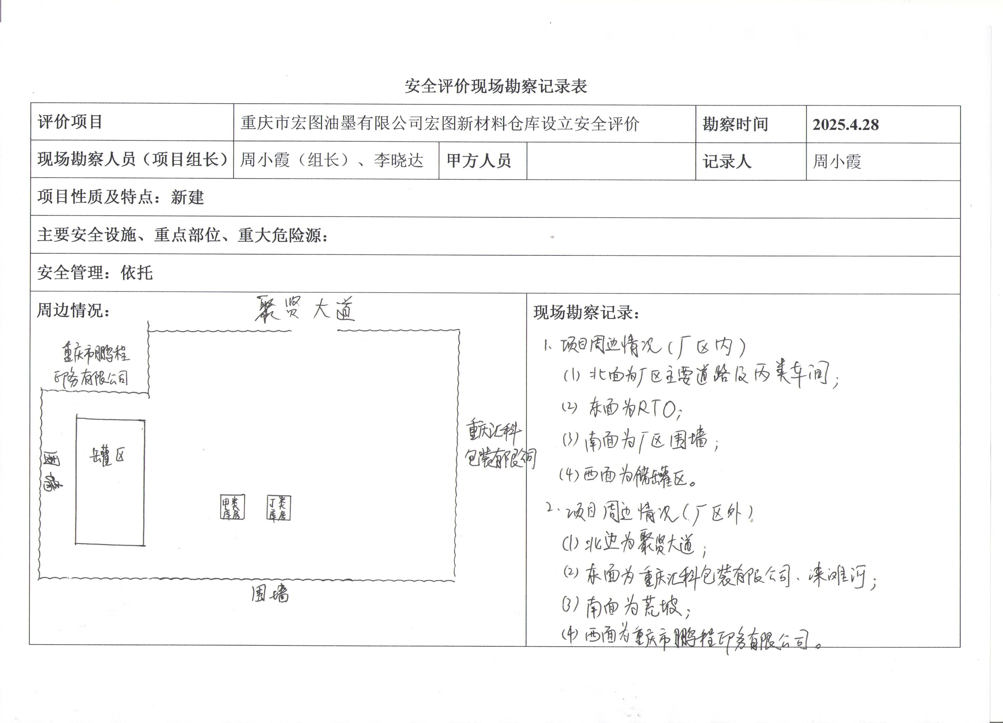 現(xiàn)場(chǎng)勘查情況 | 項(xiàng)目選址、周邊環(huán)境設(shè)施等。 | |||||||