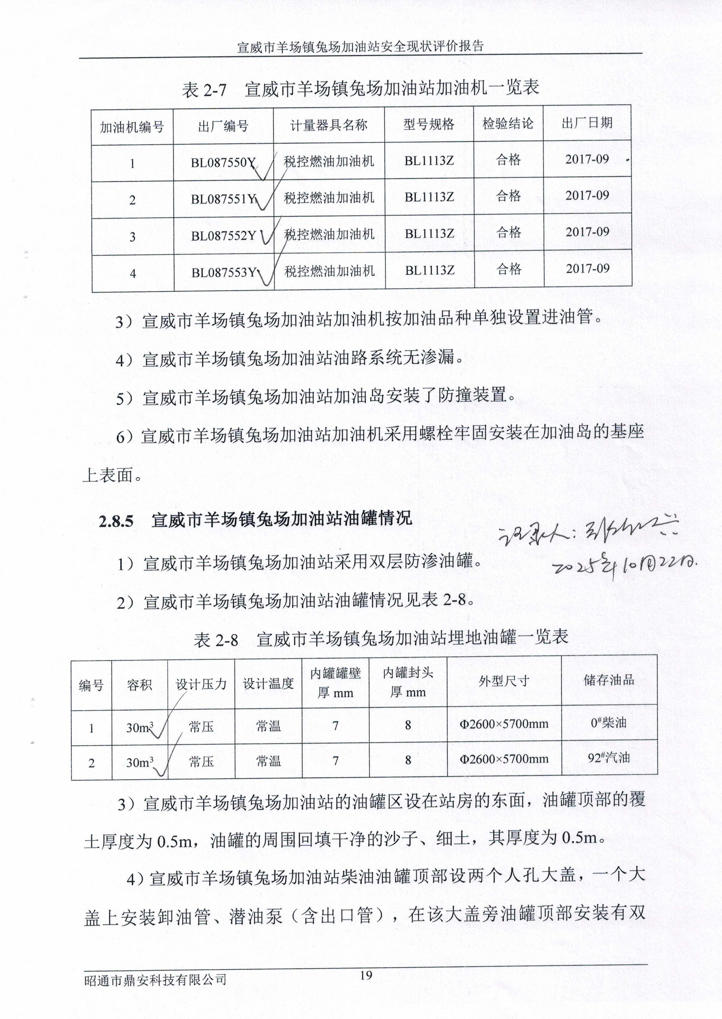 項(xiàng)目名稱 | 宣威市羊場(chǎng)鎮(zhèn)兔場(chǎng)加油站安全現(xiàn)狀評(píng)價(jià)報(bào)告 | 合同編號(hào) | DAAPQJ2025-12 | |||||