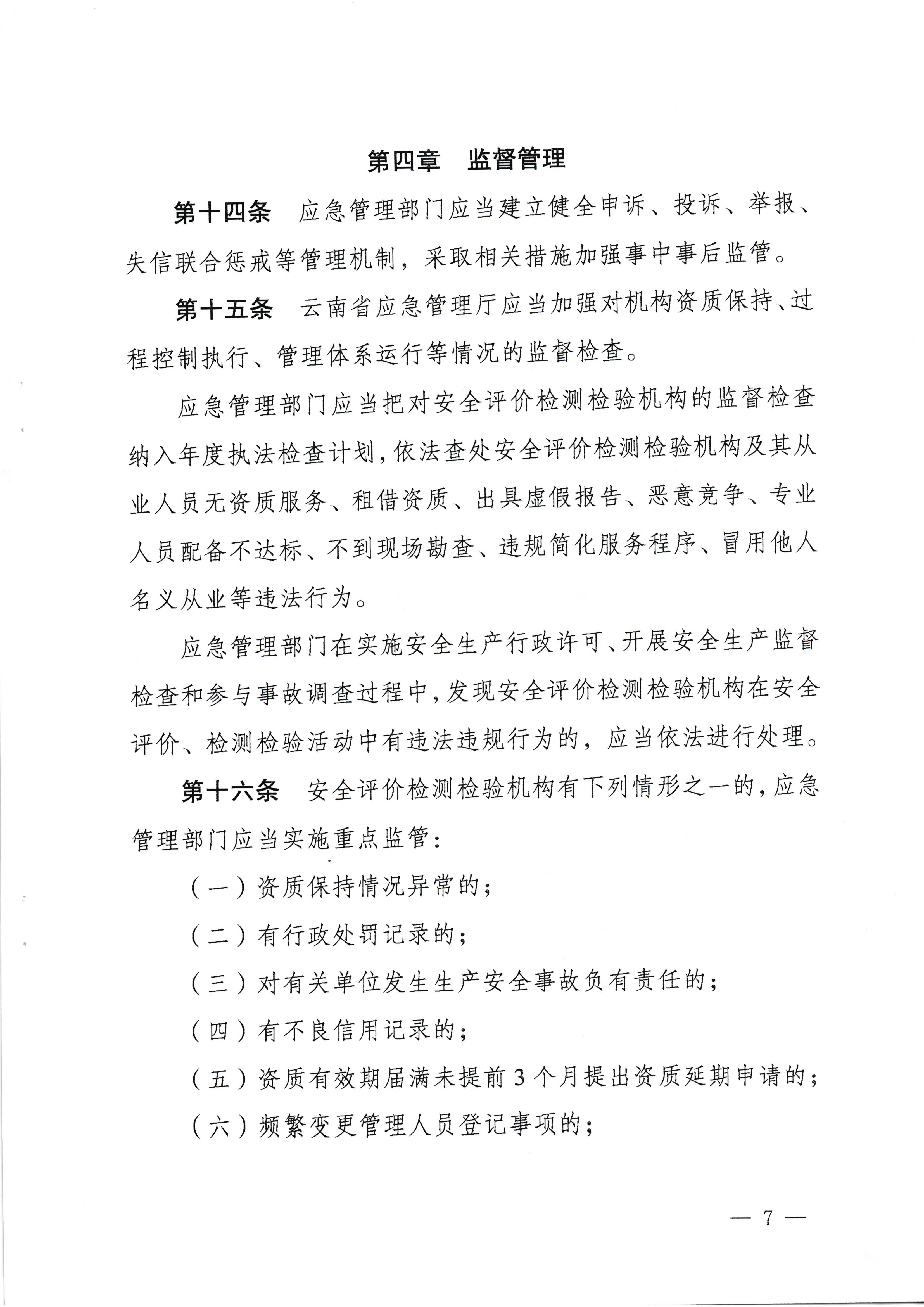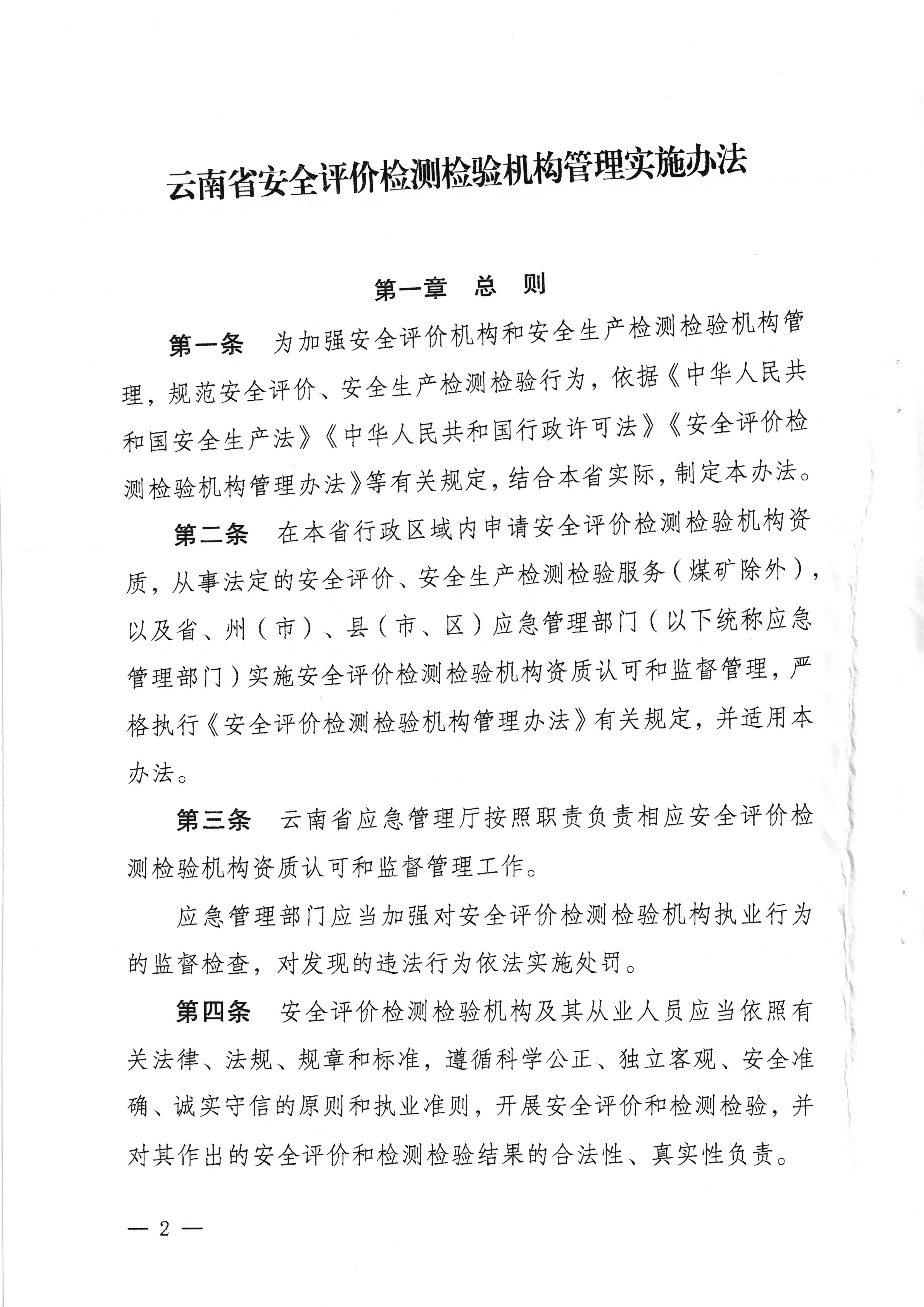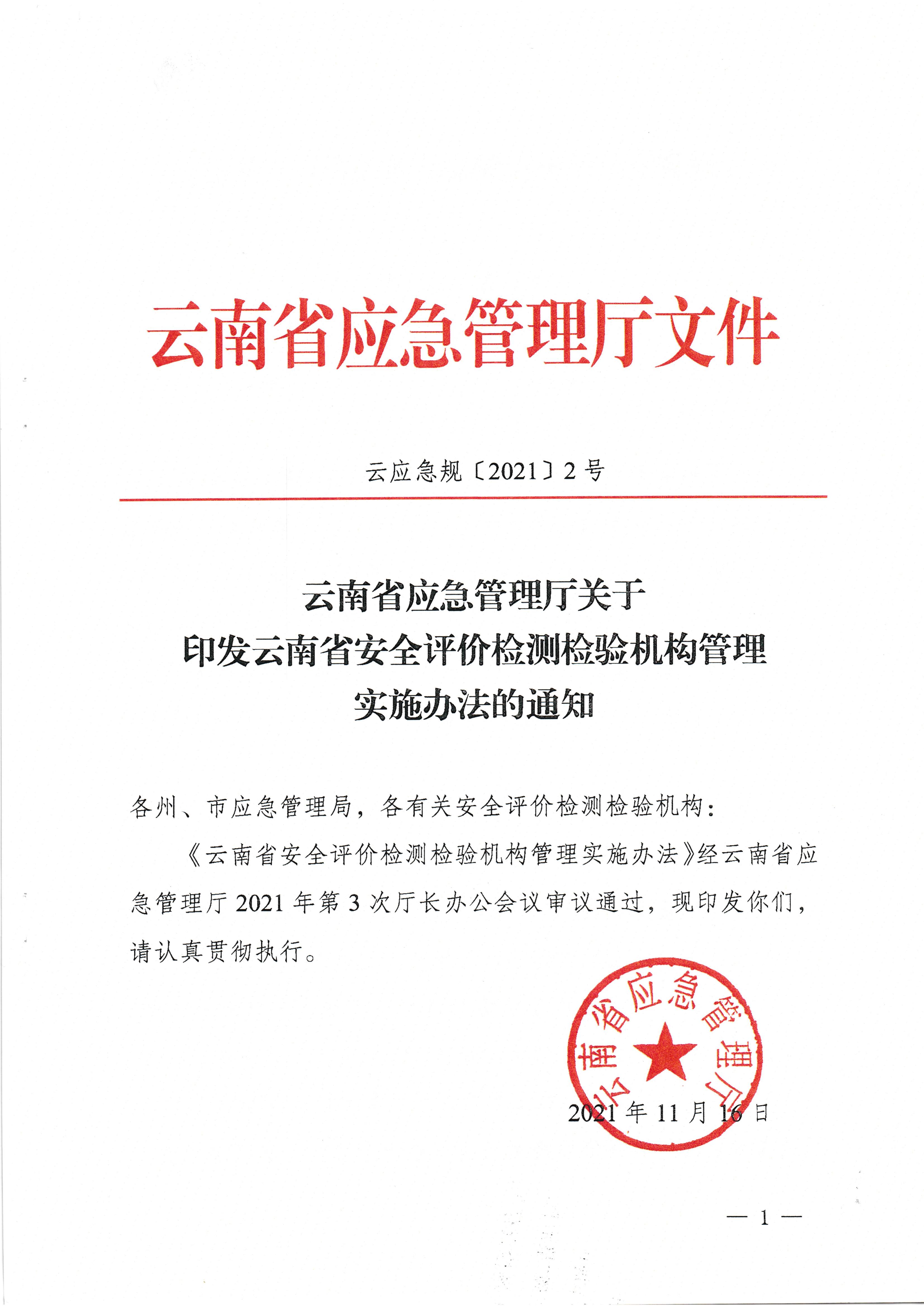 云南省應(yīng)急管理廳關(guān)于印發(fā)云南省安全評價檢測檢驗(yàn)機(jī)構(gòu)管理實(shí)施辦法的通知