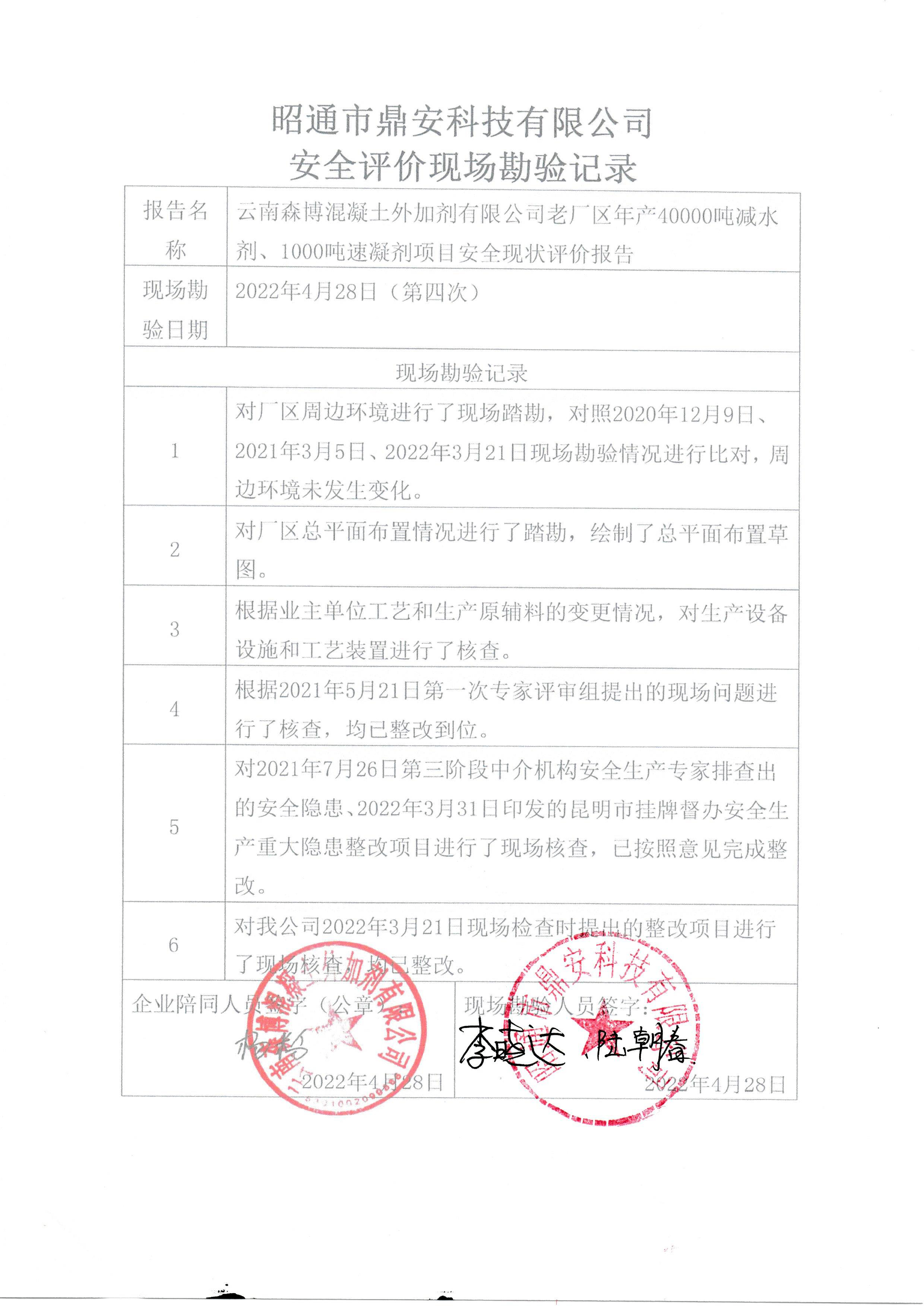 項(xiàng)目名稱 | 云南森博混凝土外加劑有限公司老廠區(qū)年產(chǎn)40000噸減水劑、1000噸速凝劑項(xiàng)目安全現(xiàn)狀評(píng)價(jià)報(bào)告 | 合同編號(hào) | DAKMAP2022-30 | |||||